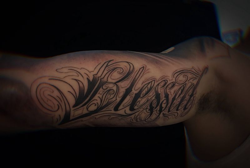 当前位置: 首页 >上海市纹身店-上海懟匠刺青工作室纹身图案>奇卡诺字体纹身图片_手臂花体字纹身图案