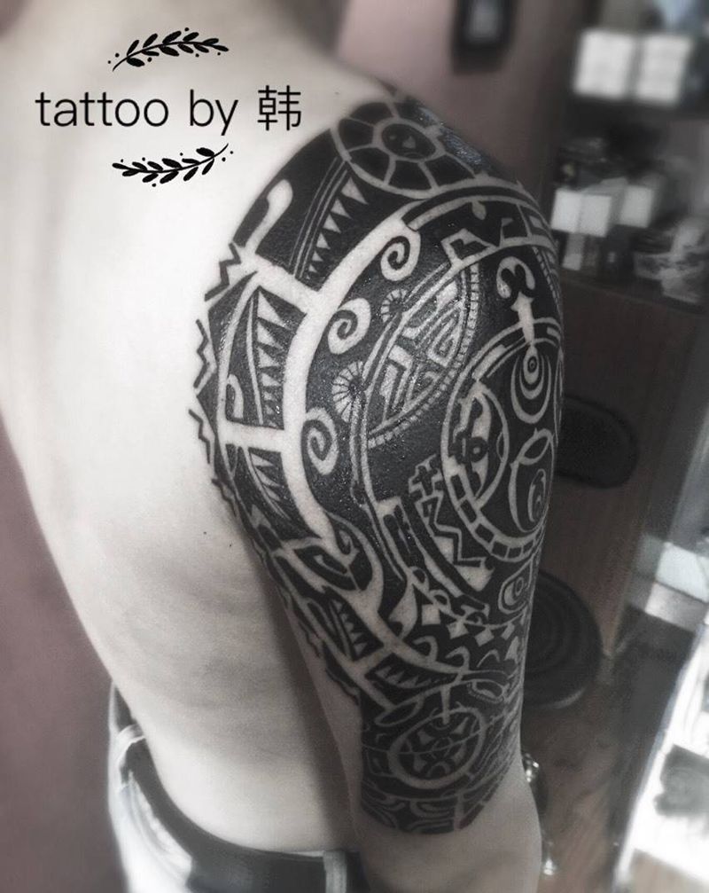 • 纹身吧推荐的披肩图腾半胛纹身图案作品展示