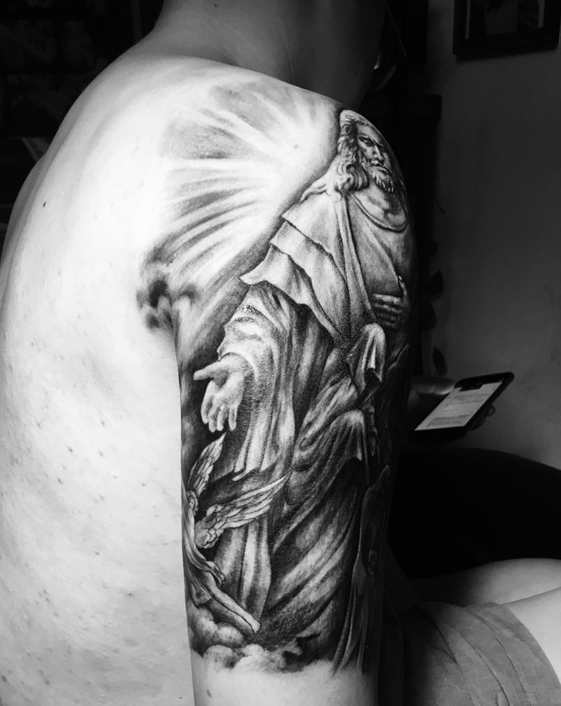 • 纹身吧推荐的披肩图腾半胛纹身图案作品展示