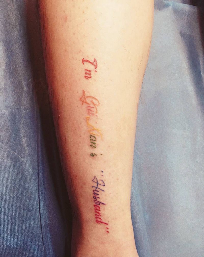 清新彩色 渐变 字体 花体字纹身图片_成品腿部清新字符几何纹身图案