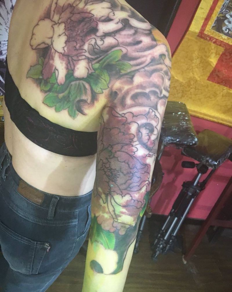 • 女性大花胸纹身_43张霸气漂亮的女性大花胸纹身图案作品
