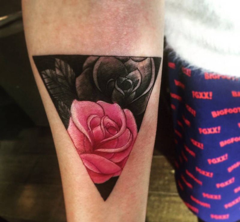 • 手背潮流时尚的玫瑰花眼睛纹身图案