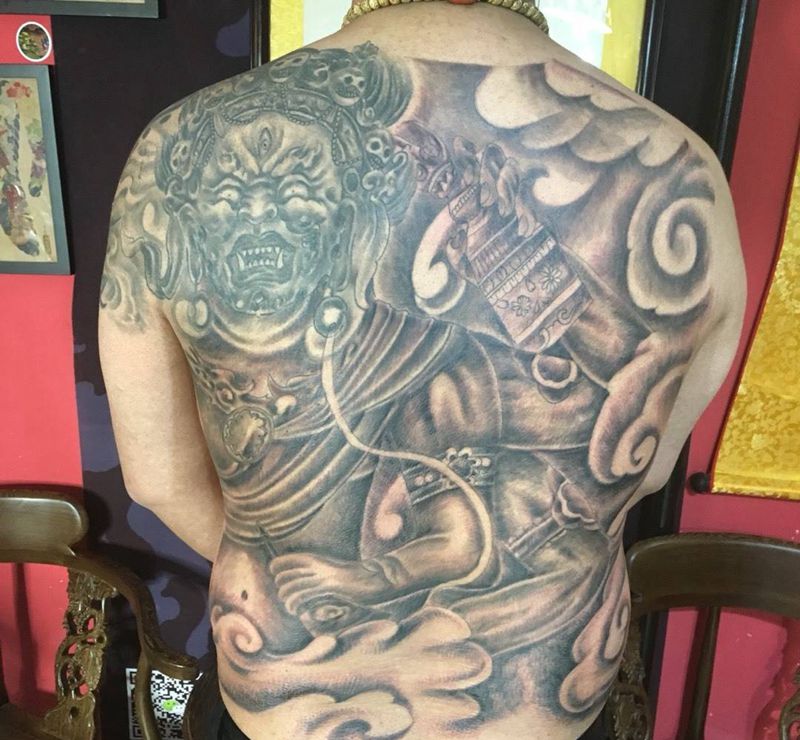 当前位置: 首页 >上海市纹身店-上海复活刺青纹绣工作室纹身图案>满背大黑天纹身图片