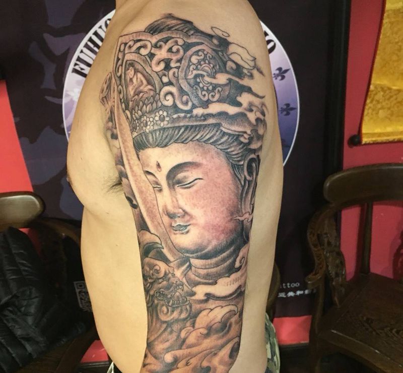 当前位置: 首页 >上海市纹身店-上海复活刺青纹绣工作室纹身图案>文殊菩萨包臂纹身图片