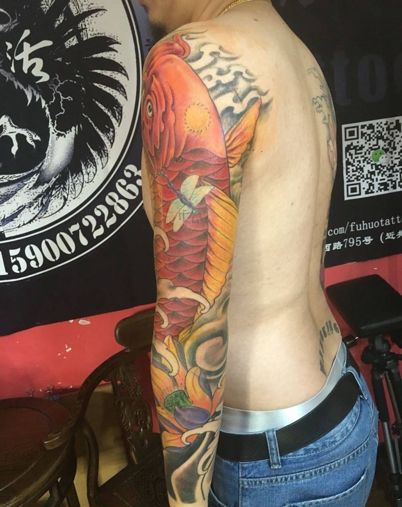 当前位置: 首页 >上海市纹身店-上海复活刺青纹绣工作室纹身图案>花臂鲤鱼纹身图片