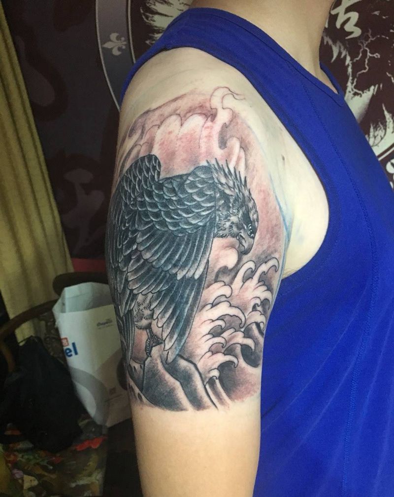 • 纹身吧推荐的披肩图腾半胛纹身图案作品展示