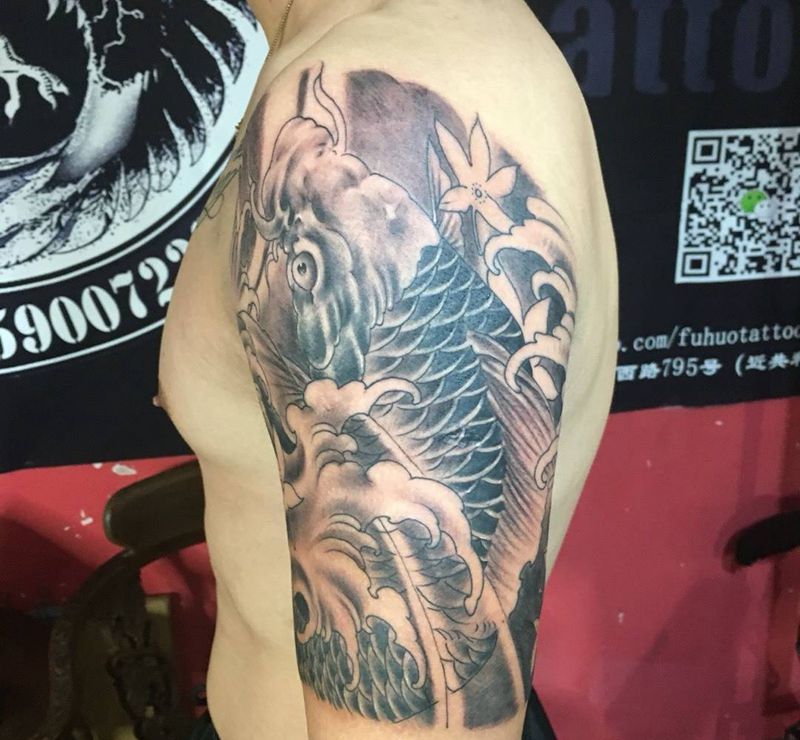 当前位置: 首页 >上海市纹身店-上海复活刺青纹绣工作室纹身图案>鲤鱼包臂纹身图片