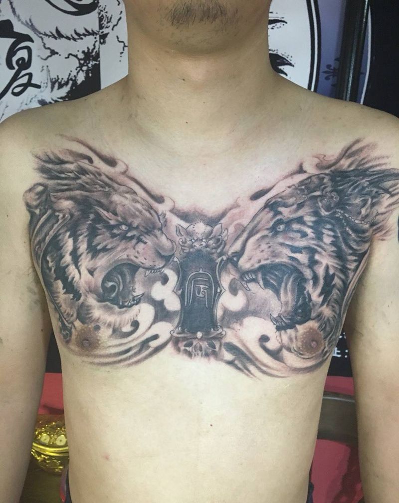 当前位置: 首页 >上海市纹身店-上海复活刺青纹绣工作室纹身图案>老虎花胸纹身图片