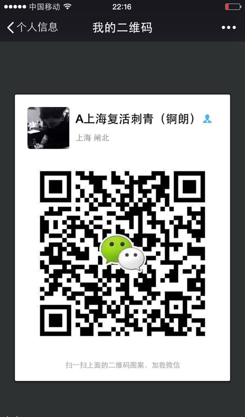 当前位置: 首页 >上海市纹身店-上海复活刺青纹绣工作室纹身图案>微信二维码纹身图片