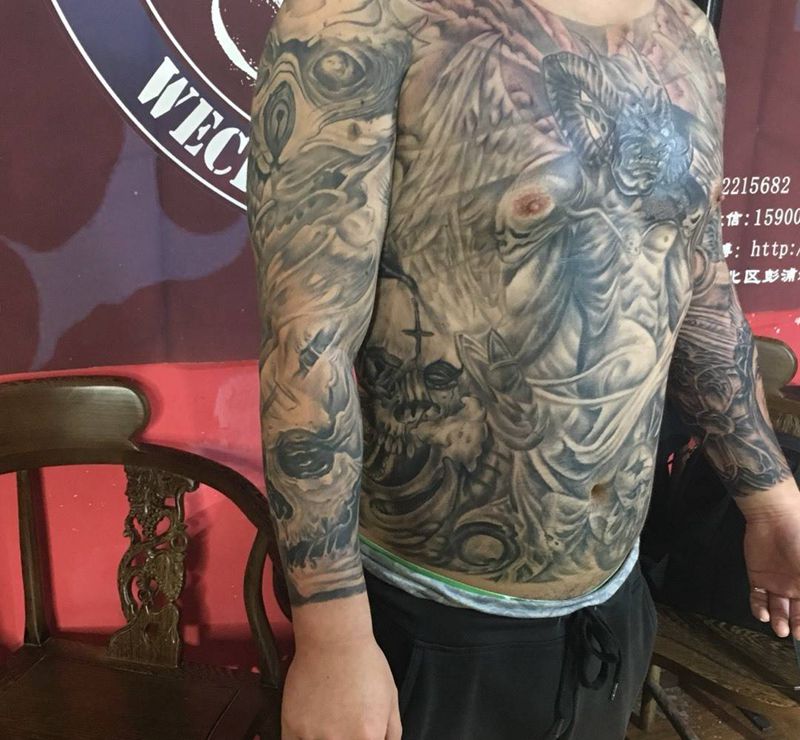 当前位置: 首页 >上海市纹身店-上海复活刺青纹绣工作室纹身图案>全身欧美全身纹身图片