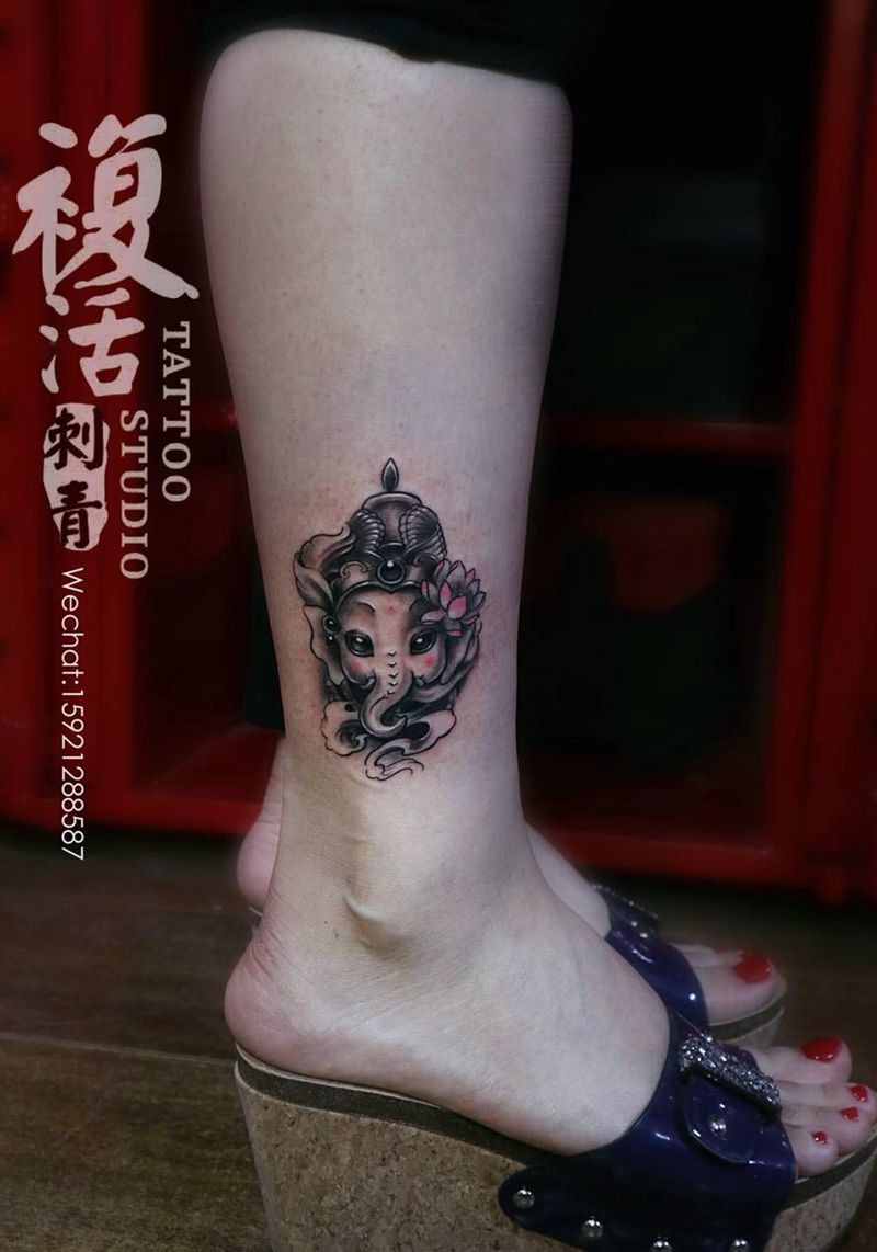 • T包小腿吹火男+阿多福纹身图片_腿部老传统新传统吹火男阿