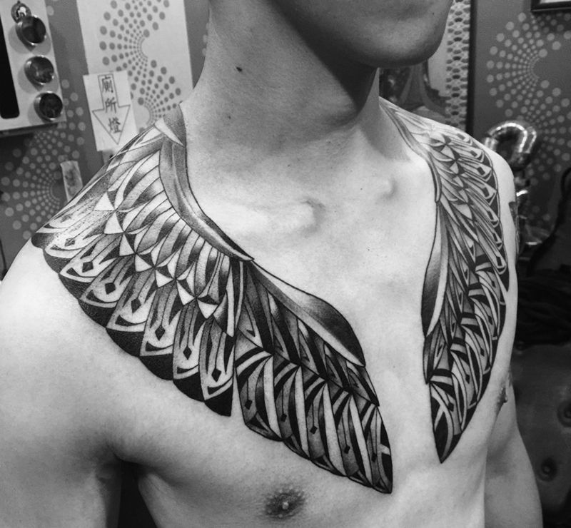 戰鷹披肩(原創)纹身图片_成品胸部欧美原创圖騰几何設計男孩紋身纹身图案