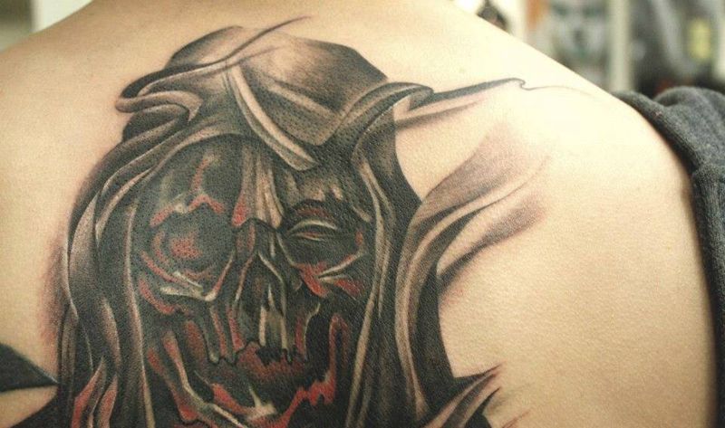 当前位置: 首页 >上海市纹身店-IRON HEART 強心紋身纹身图案>骷髏聖母纹身图片_成品欧美写实鬼神原创宗教人物背部纹身图案