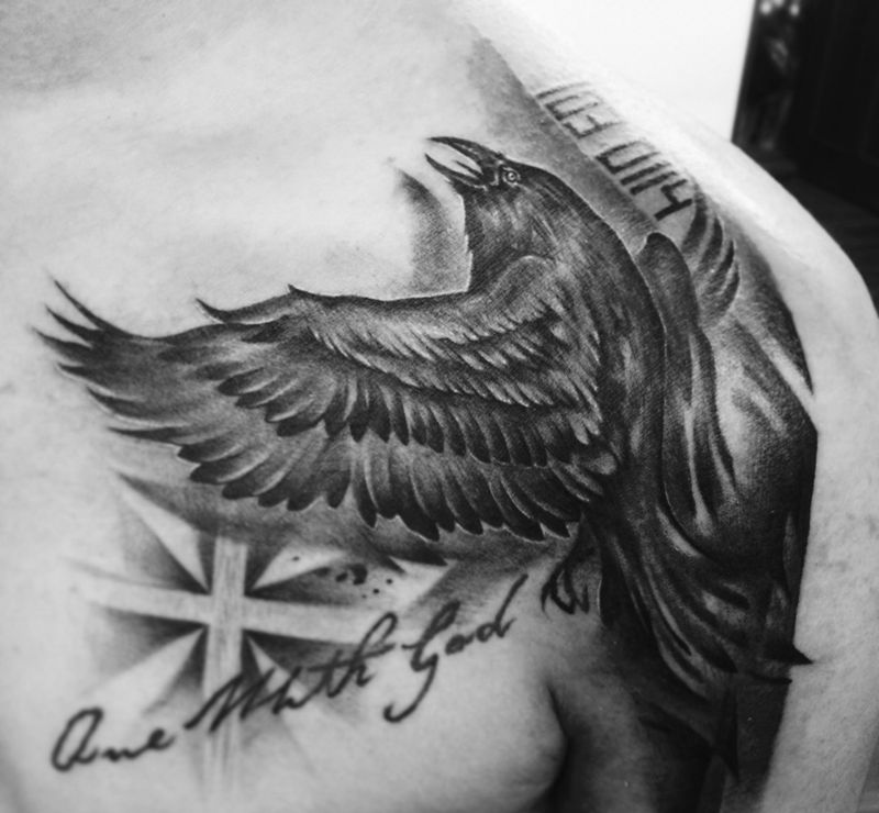 当前位置: 首页 >上海市纹身店-IRON HEART 強心紋身纹身图案>烏鴉(加圖)纹身图片_成品插画手稿肩部写实欧美动物原创字符設計纹身图案