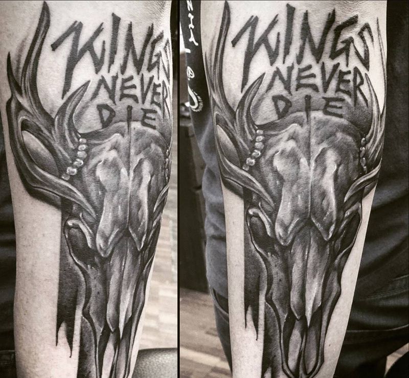 当前位置: 首页 >上海市纹身店-IRON HEART 強心紋身纹身图案>Kings never die纹身图片_成品手部欧美写实动物原创纹身图案
