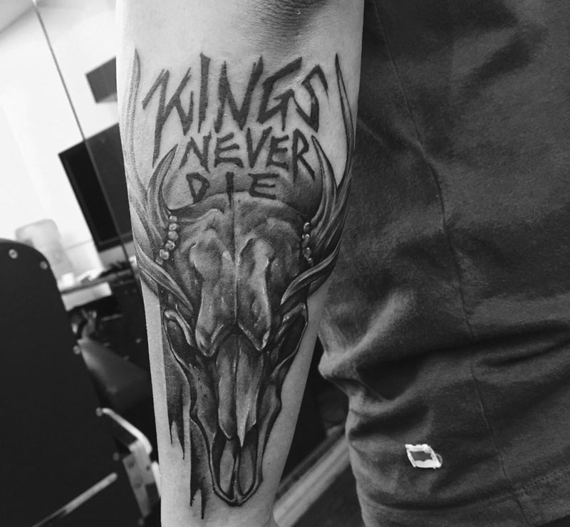 当前位置: 首页 >上海市纹身店-IRON HEART 強心紋身纹身图案>Kings never die纹身图片_成品手部欧美写实动物原创纹身图案