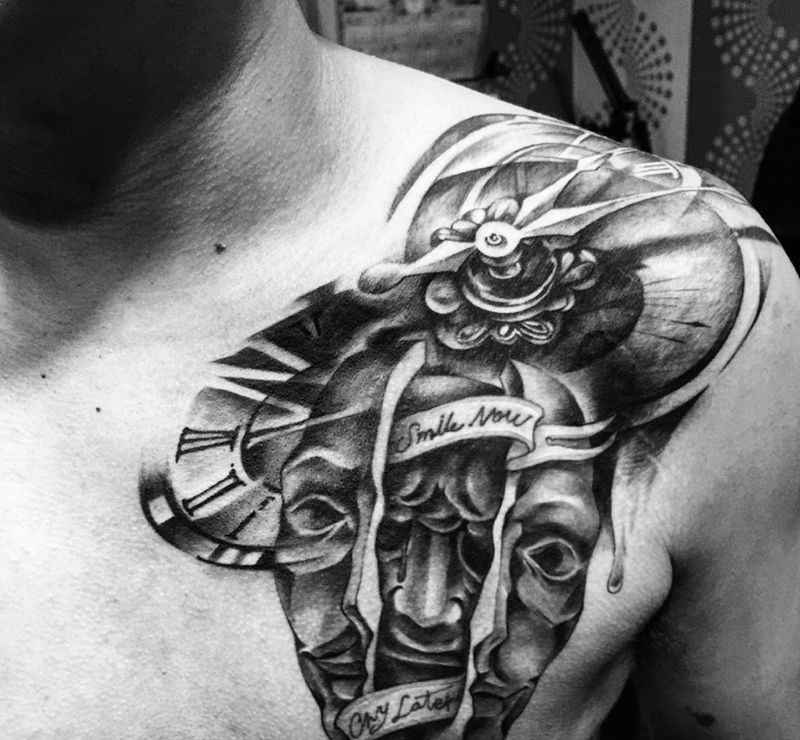Time纹身图片_成品欧美写实原创静物男孩紋身設計肩部纹身图案