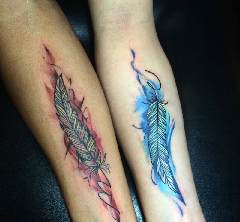 当前位置: 首页 >上海市纹身店-IRON HEART 強心紋身纹身图案>羽纹身图片_成品手臂手部欧美清新原创女孩紋身男孩紋身設計水彩暈染纹身图案