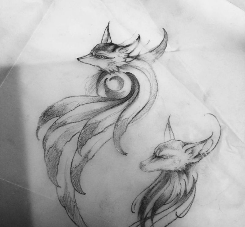 当前位置: 首页 >上海市纹身店-IRON HEART 強心紋身纹身图案>九尾狐(原創)纹身图片_成品手稿脚部欧美传统原创鬼神动物女孩紋身設計纹身图案