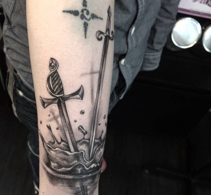 双刃入水(原創)纹身图片_成品手稿手部手臂欧美写实清新原创静物設計纹身图案