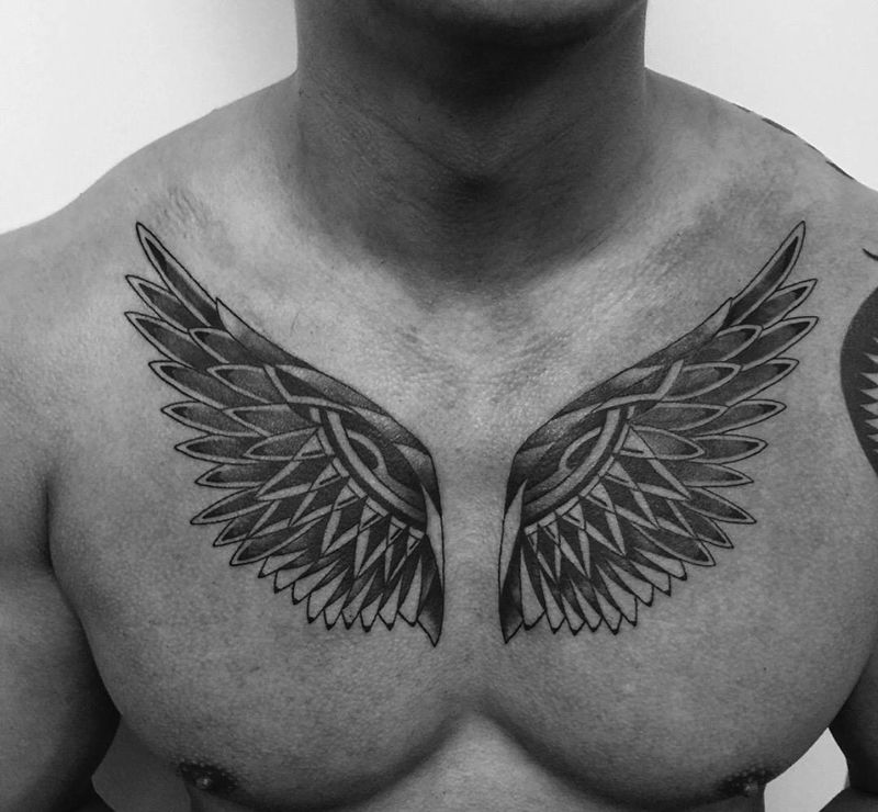翅膀(原創)纹身图片_成品手稿胸部传统图腾原创設計纹身图案