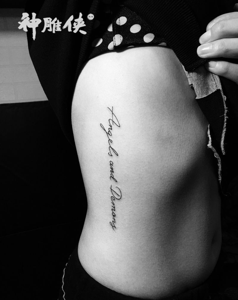 侧腰英文纹身图片