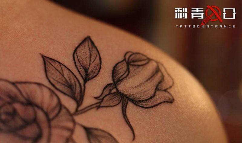 肩花一对纹身图片_成品肩部清新欧美植物纹身图案