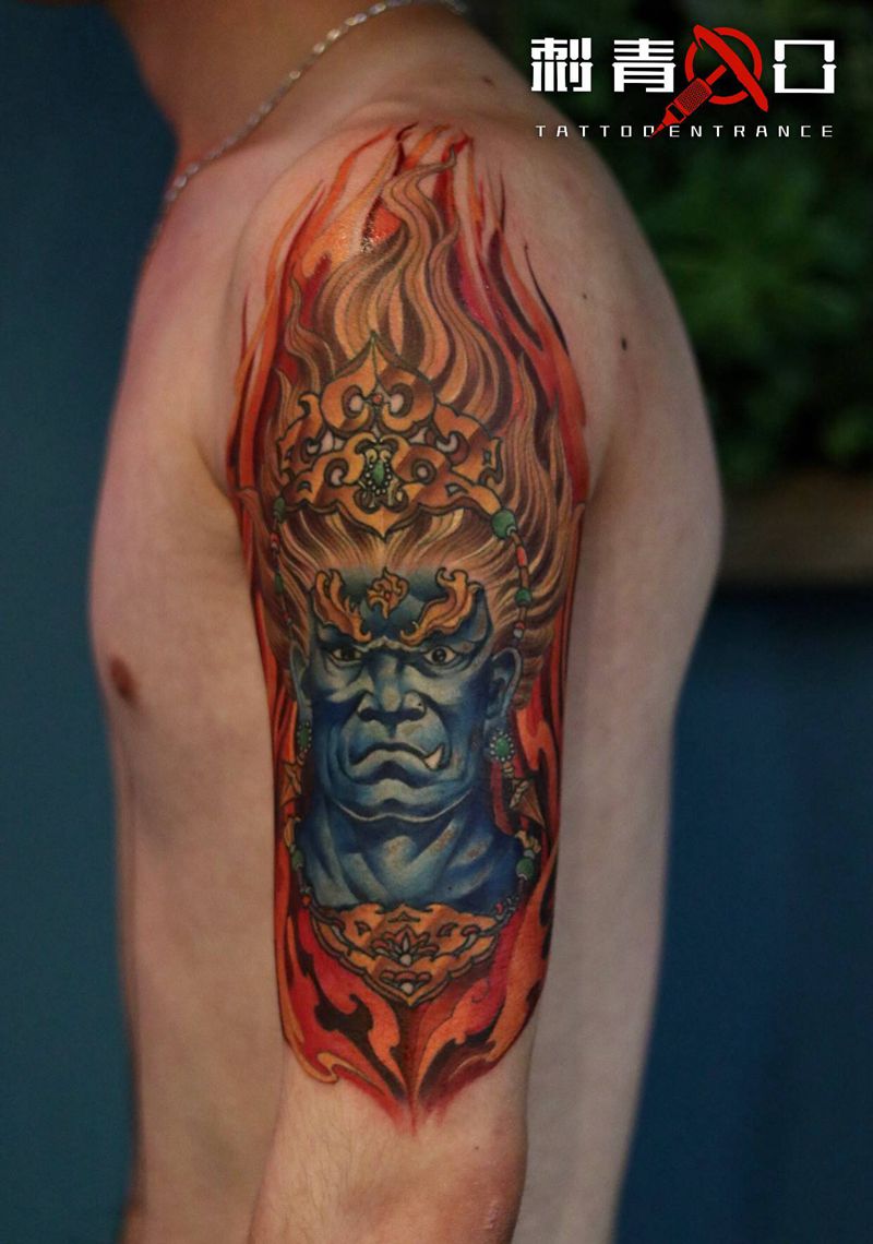 不动明王纹身图片_手臂新传统不动明王彩色新传统传统纹身图案