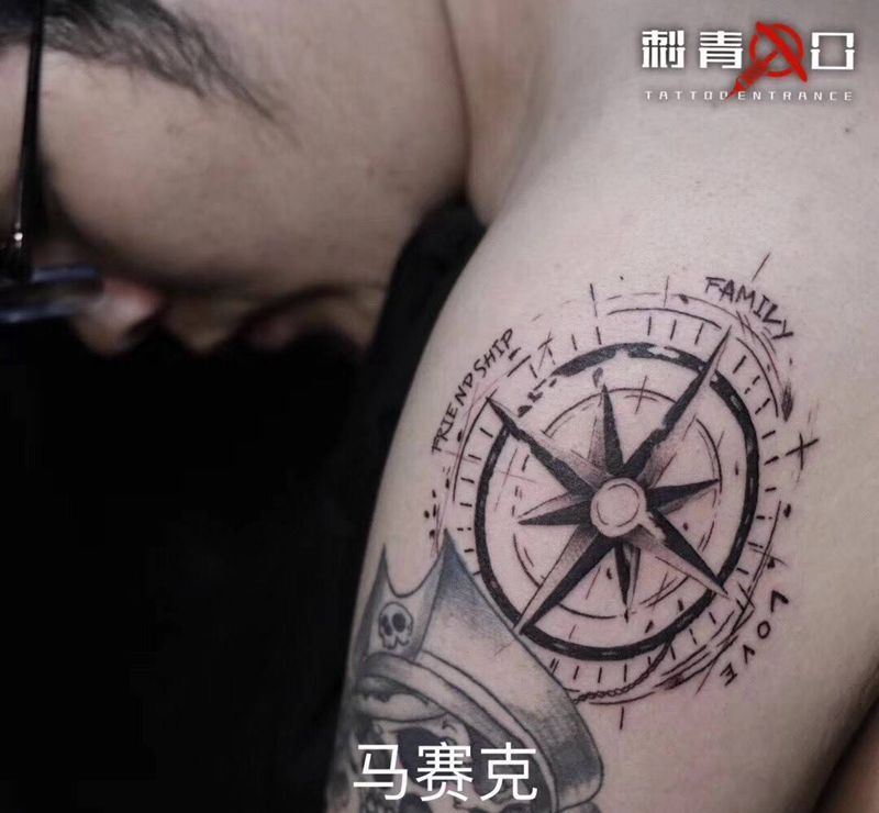 当前位置: 首页 >上海市纹身店-墨忆刺青纹身图案>大臂加图,指南针船锚纹身图片