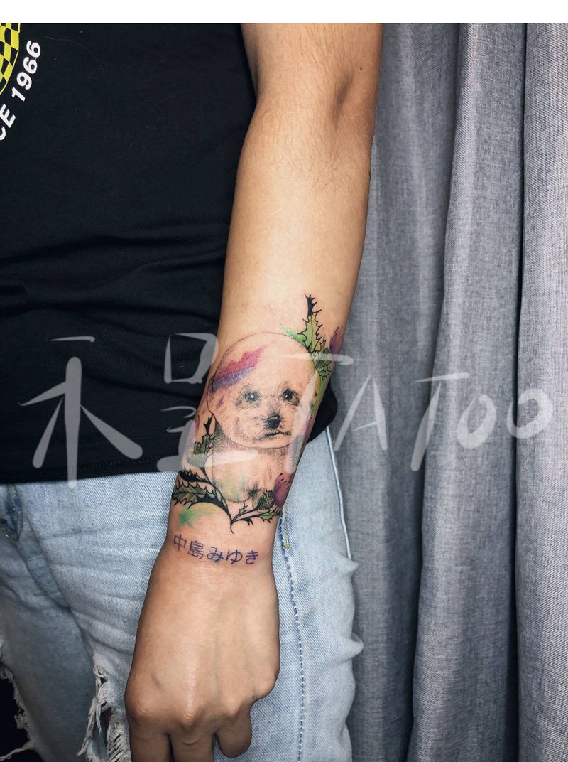 当前位置: 首页 >上海市纹身店-Big Cheng’s纹身图案>你是我的家人纹身图片_手臂水彩狗花小清新纹身图案