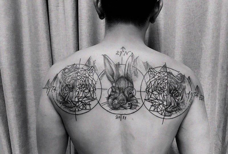 • 纹身吧推荐的披肩图腾半胛纹身图案作品展示