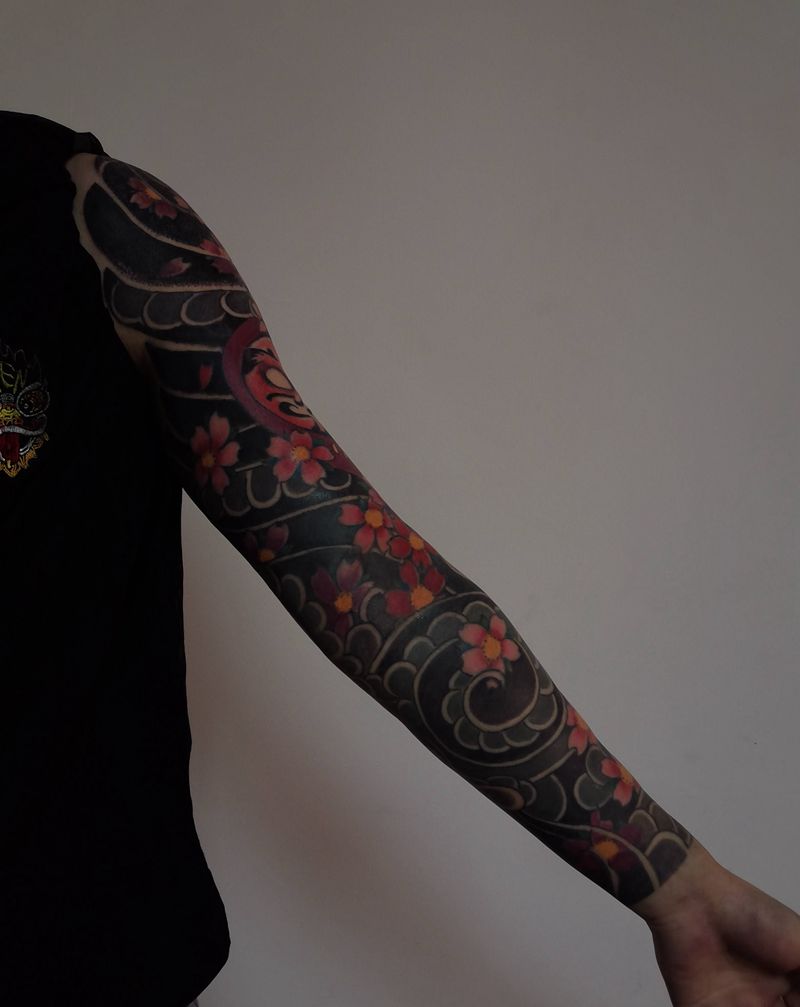 日式花臂纹身图片_手臂老传统纹身图案