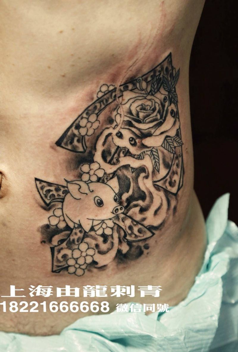 时尚性感的腹部莲花纹