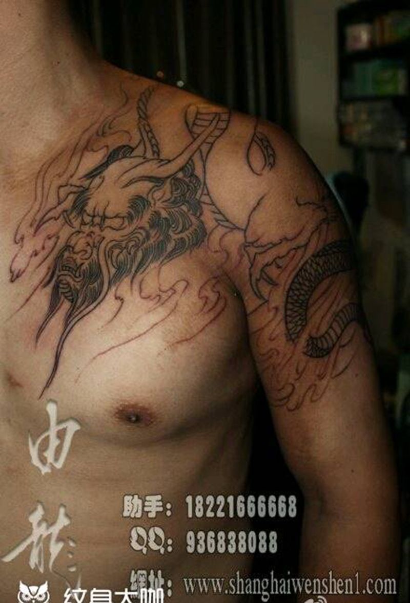 遮盖胎记过肩龙纹身图片_肩部纹身图案