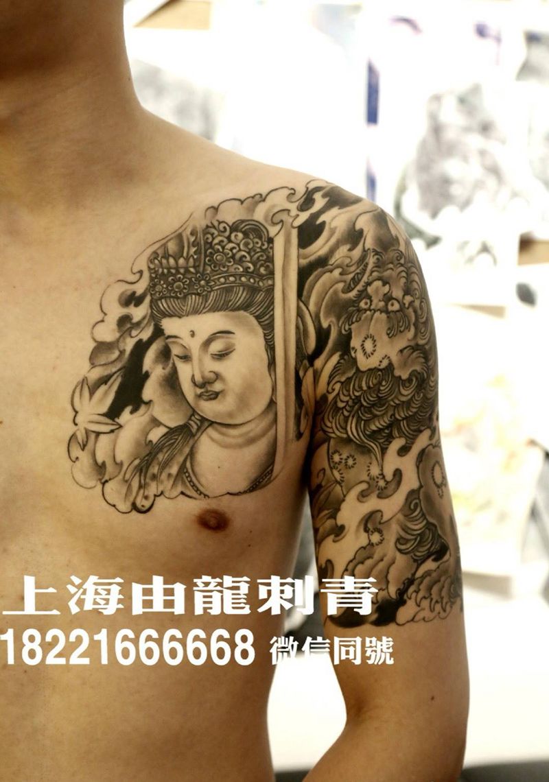 文殊菩萨半甲恢复后纹身图片_成品传统人物动物胸部手臂纹身图案
