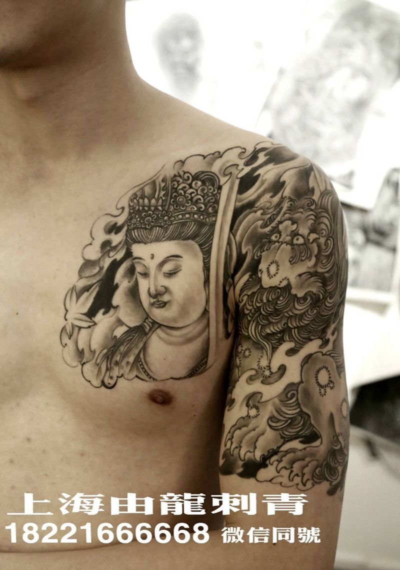 文殊菩萨半甲恢复后纹身图片_成品传统人物动物胸部手臂纹身图案