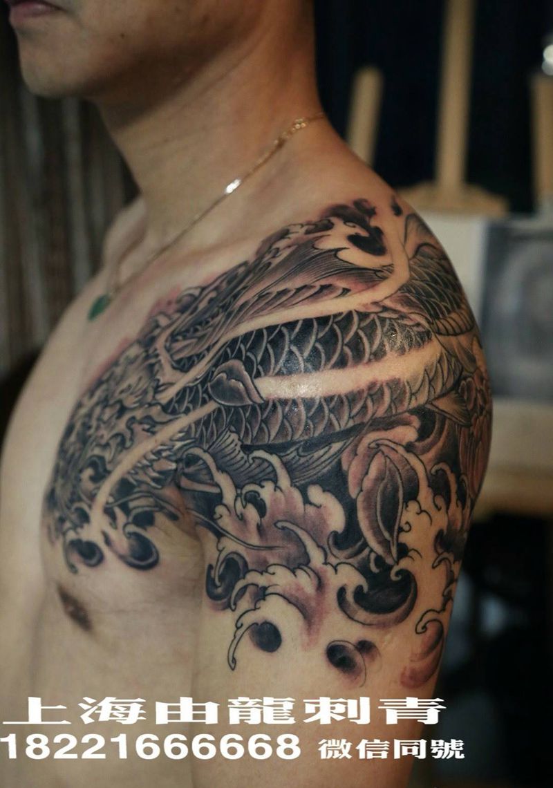 当前位置: 首页 >上海市纹身店-由龙纹身八佰伴工作室纹身图案>鳌鱼纹身图片_动物传统手臂胸部肩部纹身图案