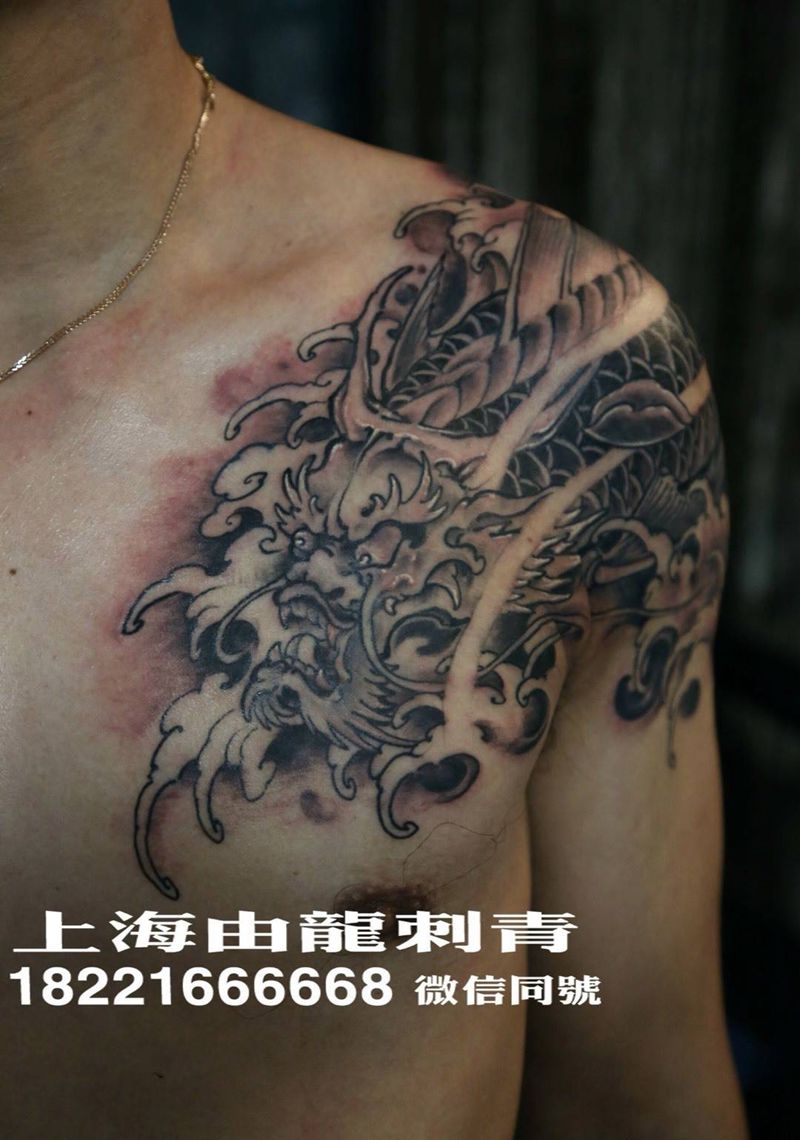 当前位置: 首页 >上海市纹身店-由龙纹身八佰伴工作室纹身图案>鳌鱼纹身图片_动物传统手臂胸部肩部纹身图案