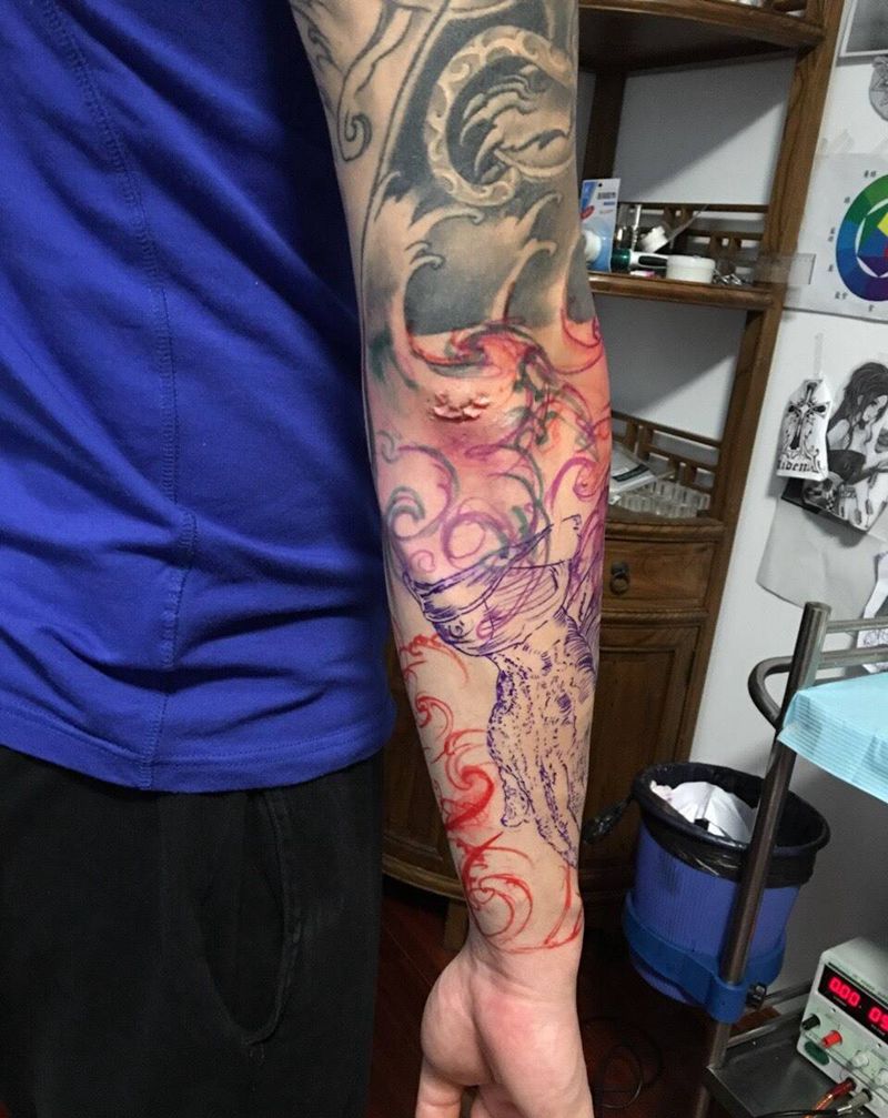当前位置: 首页 >上海市纹身店-由龙纹身八佰伴工作室纹身图案>小臂接图纹身图片