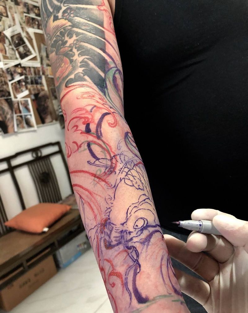 当前位置: 首页 >上海市纹身店-由龙纹身八佰伴工作室纹身图案>花臂添加,修改纹身图片