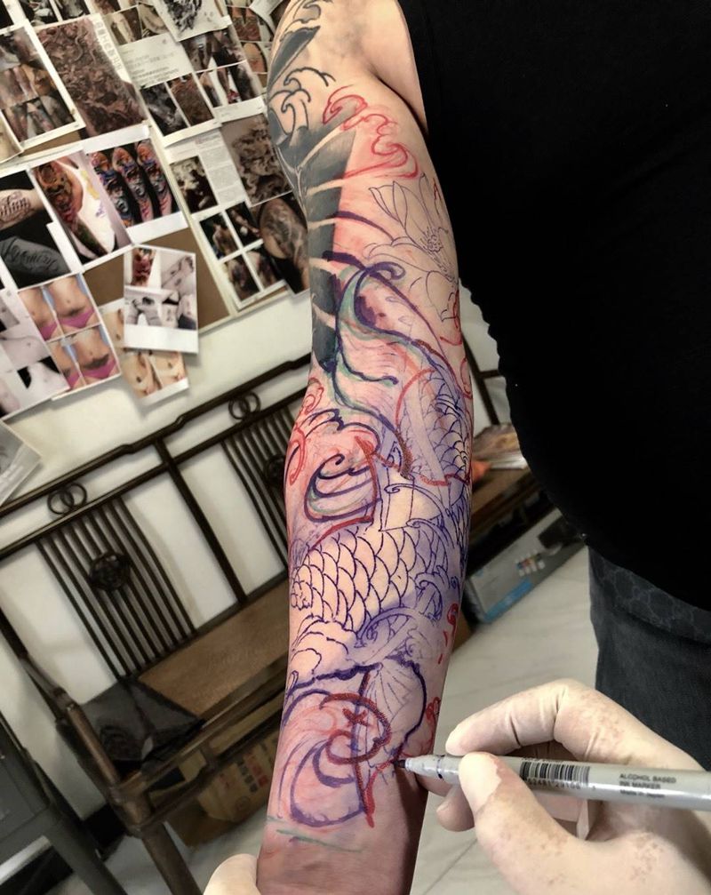 当前位置: 首页 >上海市纹身店-由龙纹身八佰伴工作室纹身图案>花臂添加,修改纹身图片