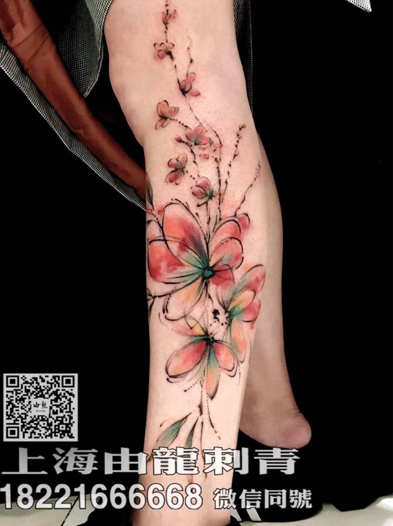 • T网红王老大花腿龙纹身图片_腿部新传统纹身图案