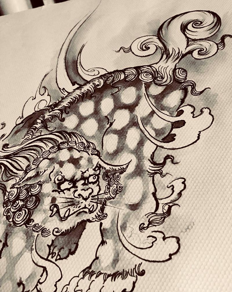 #唐狮子##唐狮子手稿# @上海由龙纹身 出品纹身图片_手稿原创传统手臂动物国画清新插画纹身图案