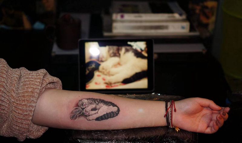当前位置: 首页 >上海市纹身店-马刺纹身工作室纹身图案>爱猫纹身图片_手臂写实纹身图案
