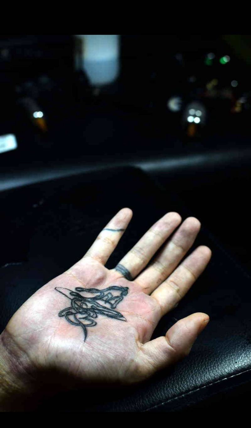 当前位置: 首页 >上海市纹身店-马刺纹身工作室纹身图案>把爱你写在手心纹身图片_成品手部原创字符纹身图案