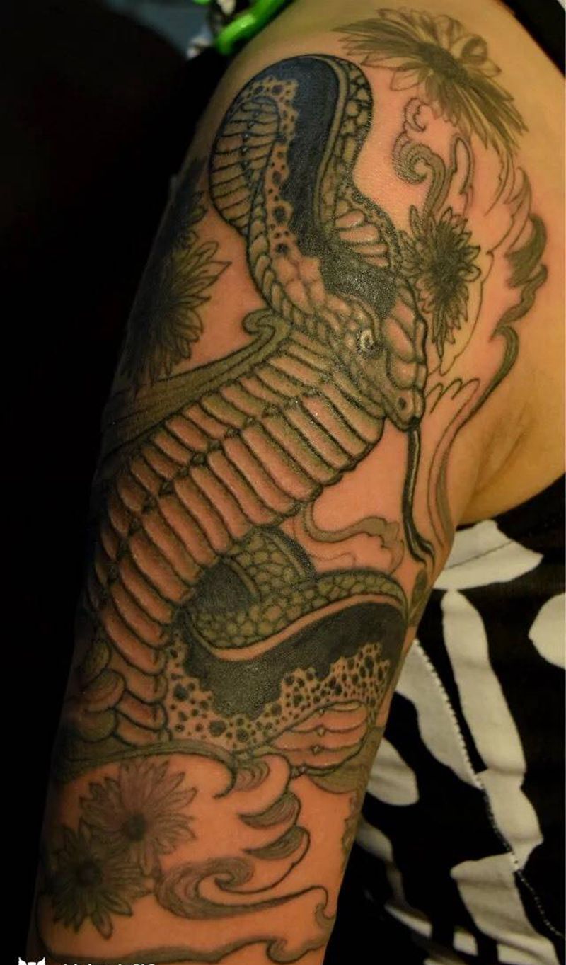 • T网红王老大花腿龙纹身图片_腿部新传统纹身图案