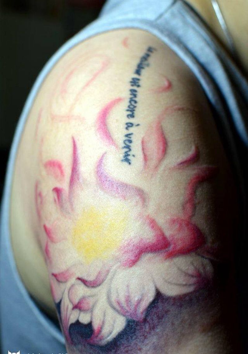 • 女性大花胸纹身_43张霸气漂亮的女性大花胸纹身图案作品