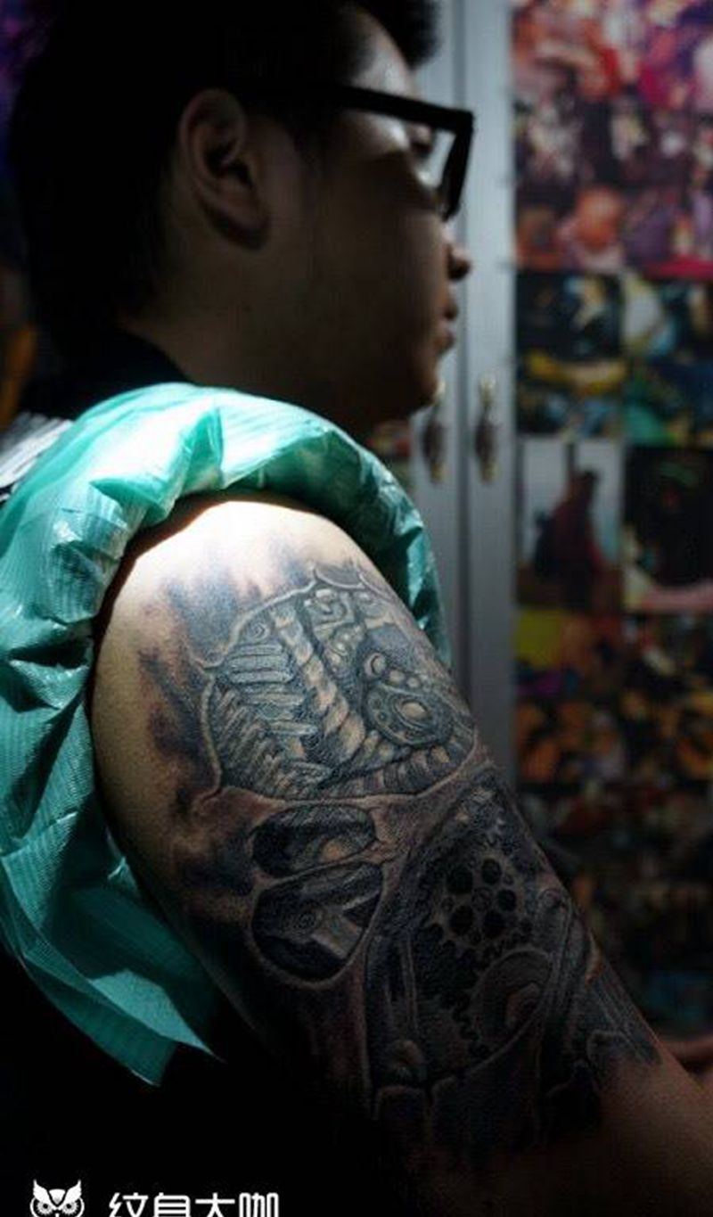 当前位置: 首页 >上海市纹身店-马刺纹身工作室纹身图案>手臂遮盖、上背原创纹身图片_成品背部手臂欧美遮盖鬼神原创纹身图案