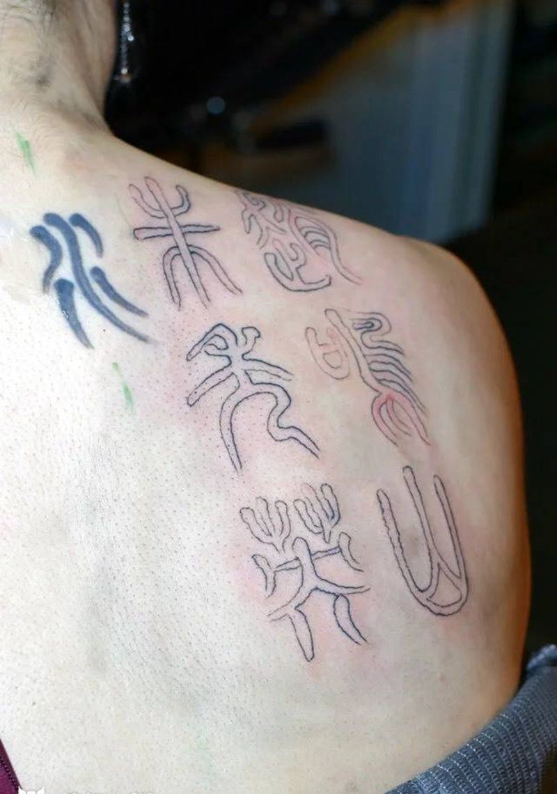 作品集110纹身图片_成品背部传统字符完全手绘纹身图案
