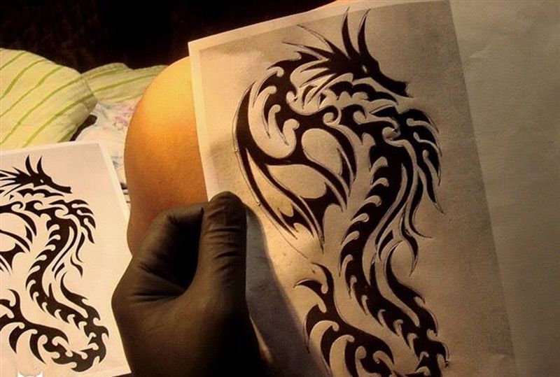 • T网红王老大花腿龙纹身图片_腿部新传统纹身图案
